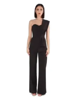 Der schwarze, einfarbige Jumpsuit besticht durch sein minimalistisches, aber dennoch auffälliges Design. Der verführerische Sweetheart-Ausschnitt und der asymmetrische Träger-Schnitt verleihen diesem Kleidungsstück eine moderne und zugleich feminine Note. Anzug präsentiert sich in Schwarz, aus 100% polyester, geeignet