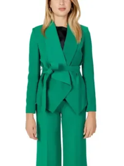 Der klassisch geschnittene Kragen und die langen Ärmel machen ihn zu einem zeitlosen Begleiter für jede Gelegenheit. Was diesen Blazer besonders auszeichnet, ist der innovative Verschluss mit Bändern, der dem Design einen modernen und einzigartigen Charakter verleiht. Jacke präsentiert sich in Grün, aus 100% polyester