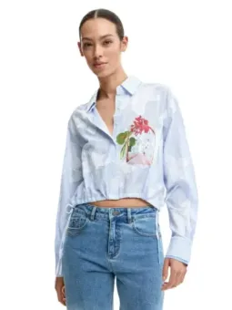 Marke: Desigual Art: Frau Typologie: Hemden Made in: CN Jahreszeit: Frühling / Sommer PRODUKTDETAILS • Farbe: azurblau • Muster: Blumen- • Verschluss: Knöpfe • Ärmel: lang • Ausschnitt: rund • Artikelcode: 26SWCW28 ZUSAMMENSETZUNG UND MATERIAL • Zusammensetzung: -100% Baumwolle • Pflegehinweise: Maschinenwäsche 30°