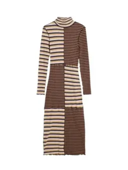 Marke: Desigual Art: Frau Typologie: Kleider Jahreszeit: Frühling / Sommer PRODUKTDETAILS • Farbe: braun • Muster: Streifen • Ärmel: lang • Ausschnitt: hoch • Artikelcode: 26SWVKX5 ZUSAMMENSETZUNG UND MATERIAL • Zusammensetzung: -94% Baumwolle -6% Viskose • Pflegehinweise