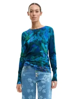 Marke: Desigual Art: Frau Typologie: Pullover Jahreszeit: Frühling / Sommer PRODUKTDETAILS • Farbe: blau • Muster: Blumen- • Ärmel: lang • Ausschnitt: rund • Artikelcode: 26SWJF36 ZUSAMMENSETZUNG UND MATERIAL • Zusammensetzung: -18% Polyamid -82% Viskose • Pflegehinweise: Maschinenwäsche 30° Marke: Desigual Art: Frau