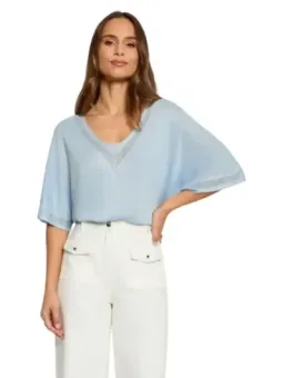 Marke: Morgan De Toi Art: Frau Typologie: Pullover Made in: CN Jahreszeit: Frühling / Sommer PRODUKTDETAILS • Farbe: azurblau • Ärmel: kurz • Ausschnitt: V-Ausschnitt • Artikelcode: 241-MCHRIS ZUSAMMENSETZUNG UND MATERIAL • Zusammensetzung: -7% Metall -13% Polyester -80% Viskose