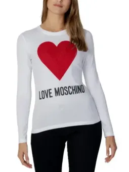 Erleben Sie den ultimativen Herbst/Winter-Look mit dem eleganten Love Moschino Herzmotiv Langarmshirt für Frauen. Dieses stilvolle T-Shirt besticht durch sein auffälliges Herzmuster auf einem klassischen weißen Hintergrund, das garantiert alle Blicke auf sich zieht.