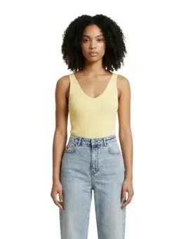 Marke: Jacqueline De Yong Art: Frau Typologie: Tank-Tops Made in: BD Jahreszeit: Frühling / Sommer PRODUKTDETAILS • Farbe: gelb • Ärmel: ärmellos • Ausschnitt: tiefer V-Ausschnitt • Artikelcode: 15180497 ZUSAMMENSETZUNG UND MATERIAL • Zusammensetzung: -20% Nylon -80% Viskose •