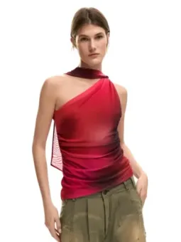 Marke: Desigual Art: Frau Typologie: Top Jahreszeit: Frühling / Sommer PRODUKTDETAILS • Farbe: rot • Ärmel: ärmellos • Weitere Details: -mit einem Träger • Artikelcode: 26SWTK31 ZUSAMMENSETZUNG UND MATERIAL • Zusammensetzung: -7% Elasthan -93% Polyester • Pflegehinweise